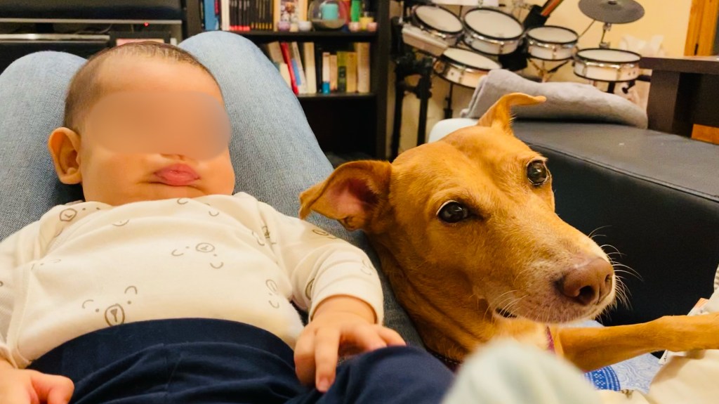 Al principio, nuestro podenquito responsable se preocupó bastante cuando llegamos con su nueva hermana de dos patas. No tardó más de 10 días en comprobar que esa humana en miniatura no era un peligro para él, era un integrante más al que querer.